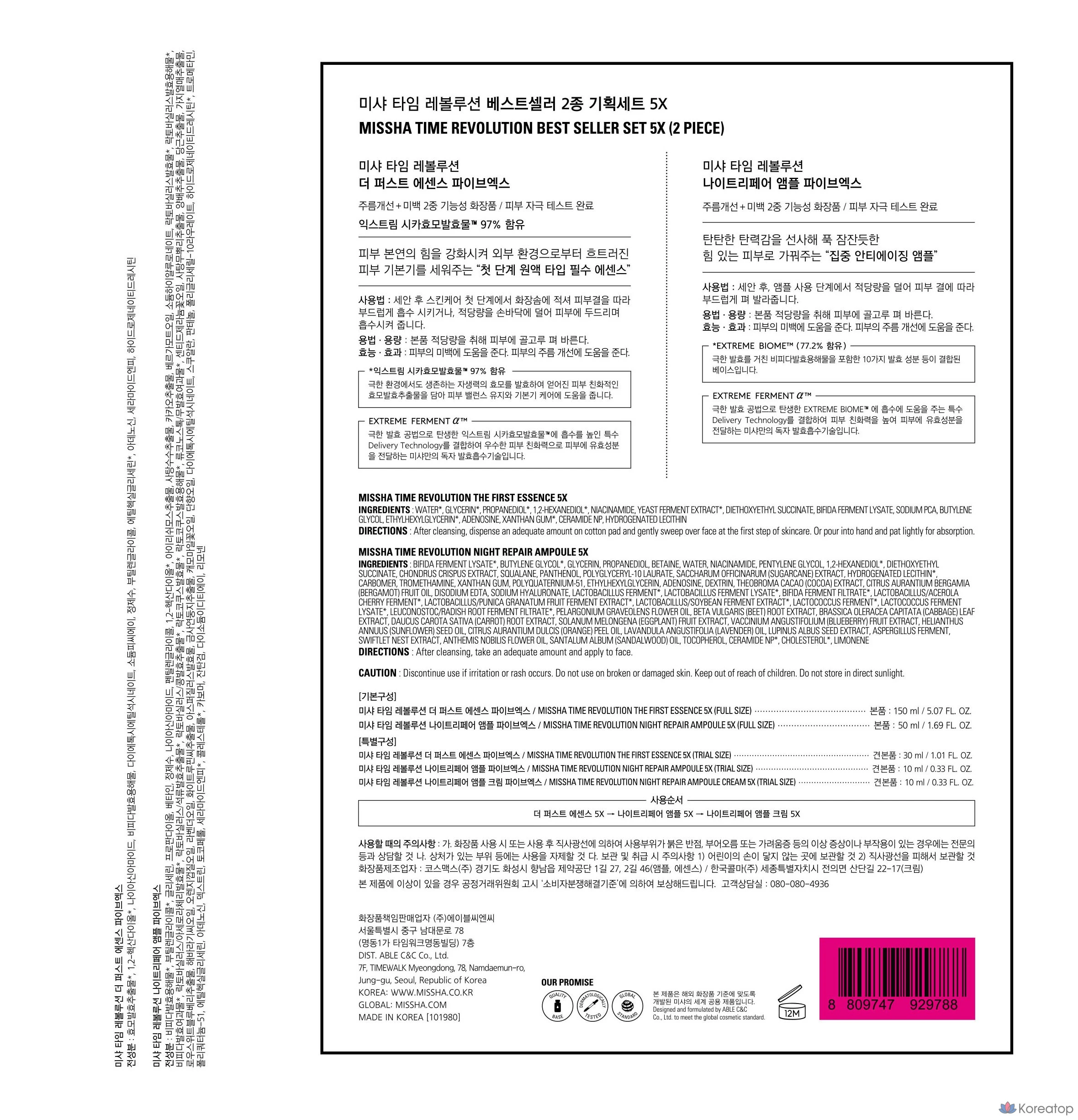 Набор Missha Time Revolution Bestseller из 2 предметов, 5 шт., 1 комплект.