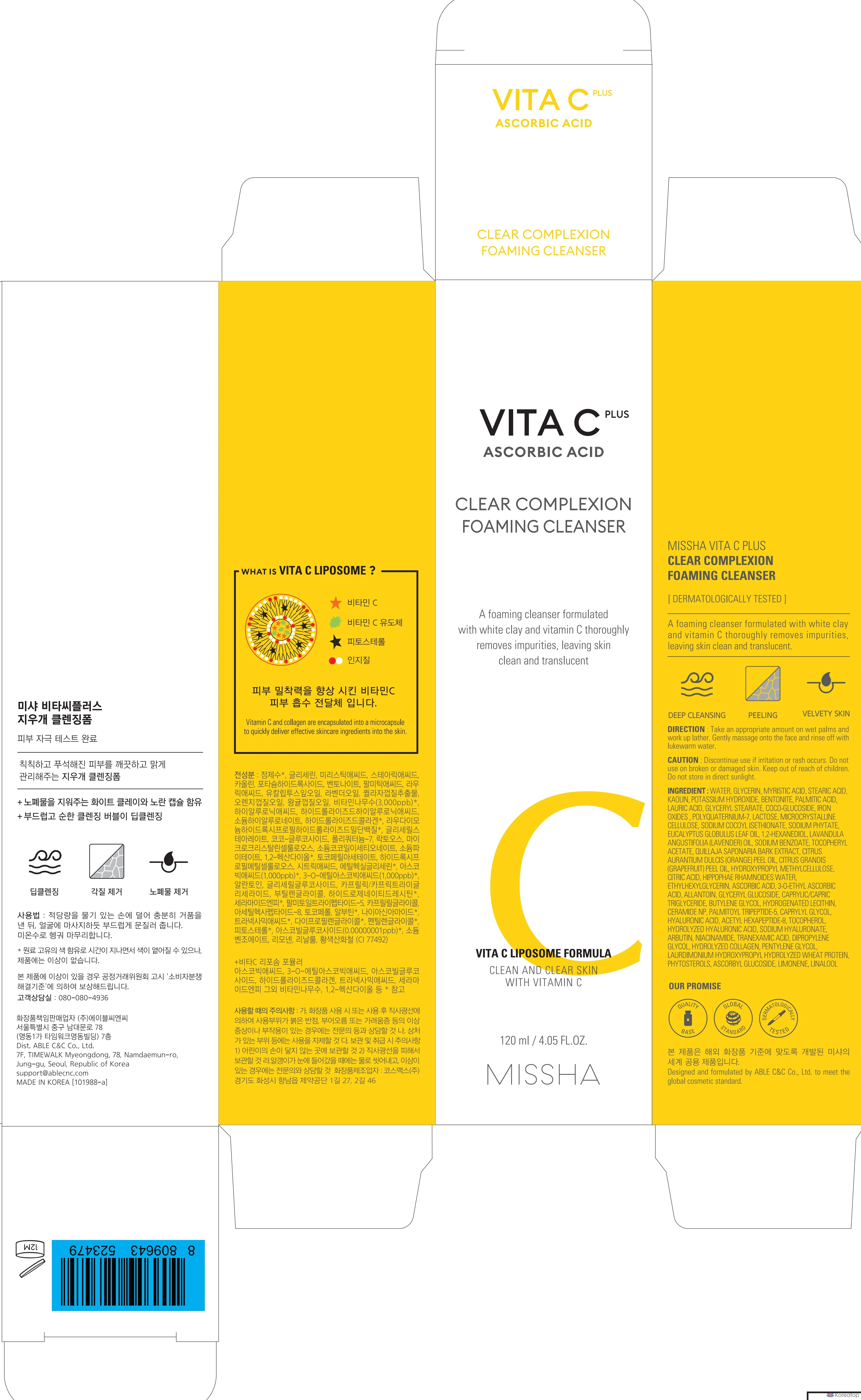 Очищающая пенка Missha Vita C Plus Eraser, 120 мл, 1 шт.