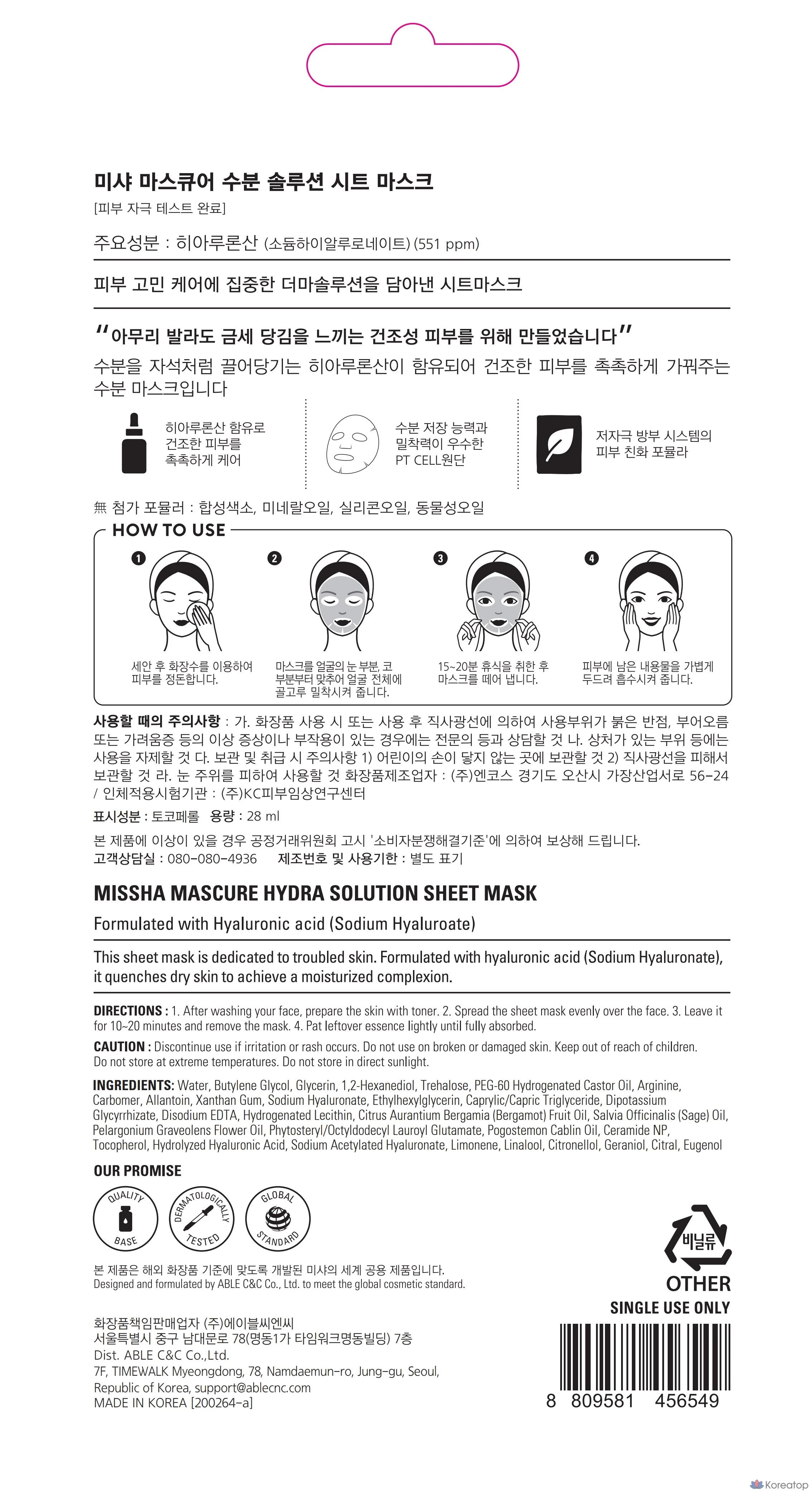 Отшелушивающая тканевая маска Missha Mascure с PHA-кислотами, 1 упаковка, 1 шт.