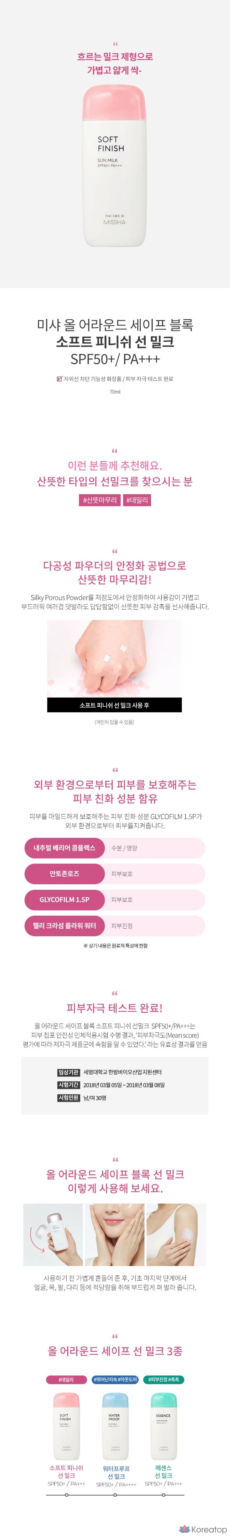 Солнцезащитное молочко Missha All Around Safe Block Soft Finish SPF50+ PA+++, 70 мл, 1 шт.