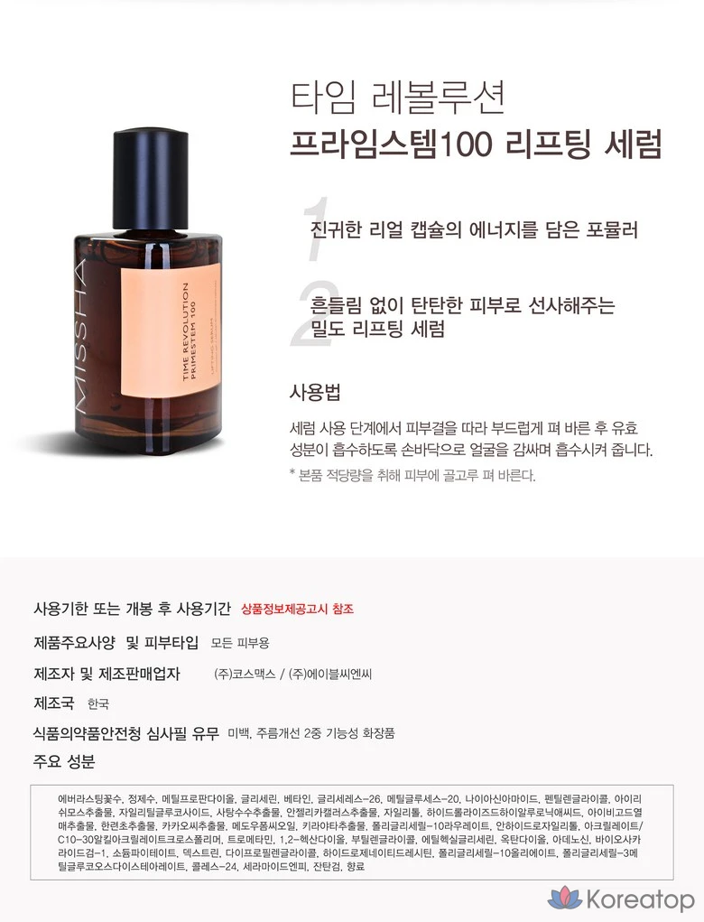 Сыворотка для лифтинга Missha Global Edition Time Revolution Primestem100, 75 мл, 1 шт.