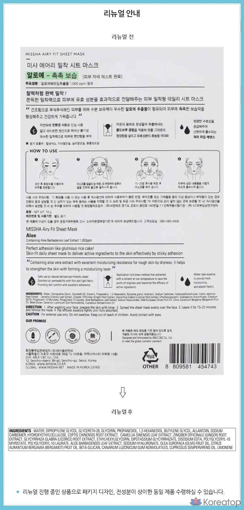 Тканевая маска Missha Airy с алоэ вера, 1 упаковка, 1 штука