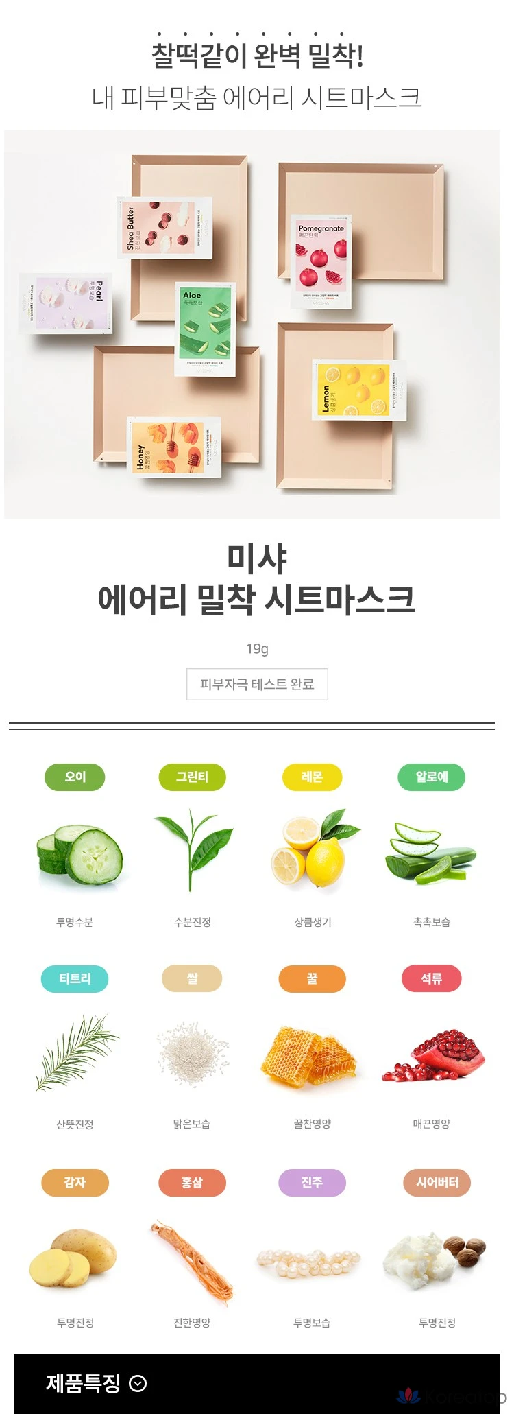 Тканевая маска для лица Missha Airy Fit с экстрактом алоэ, 19 г