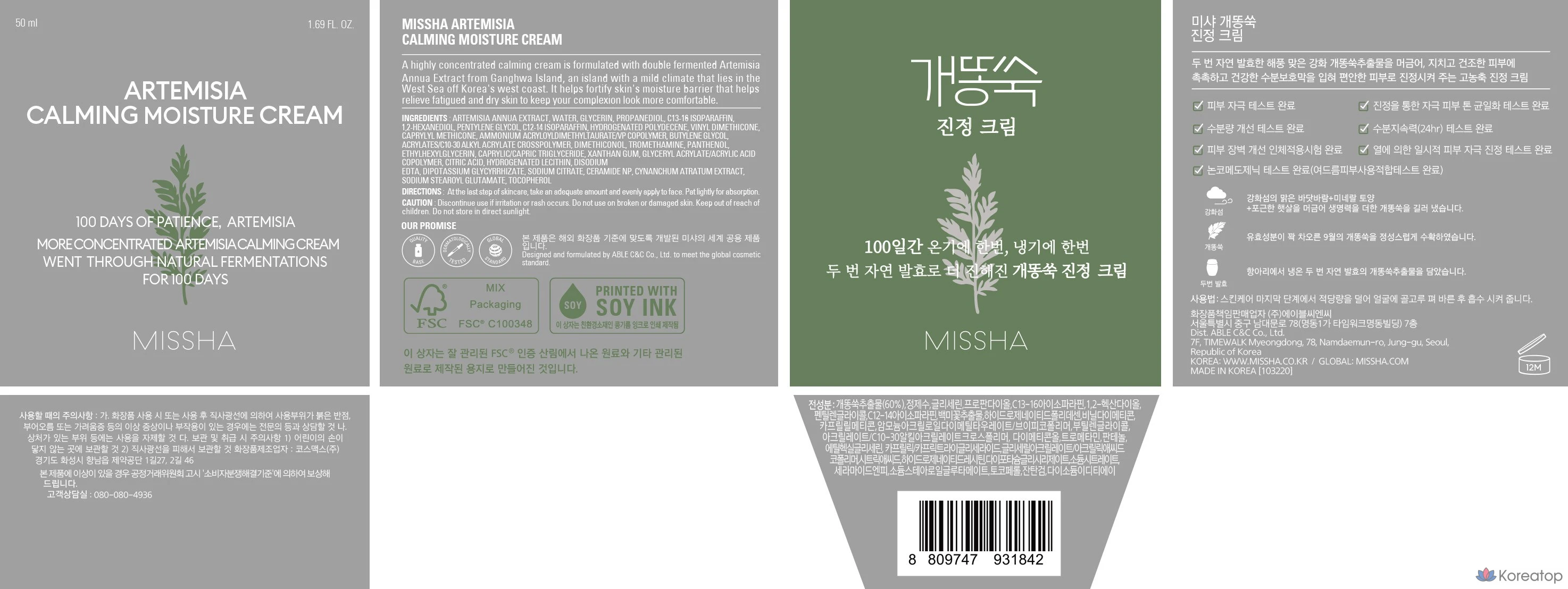Успокаивающий крем Missha Artemisia, 50 мл, 1 шт.