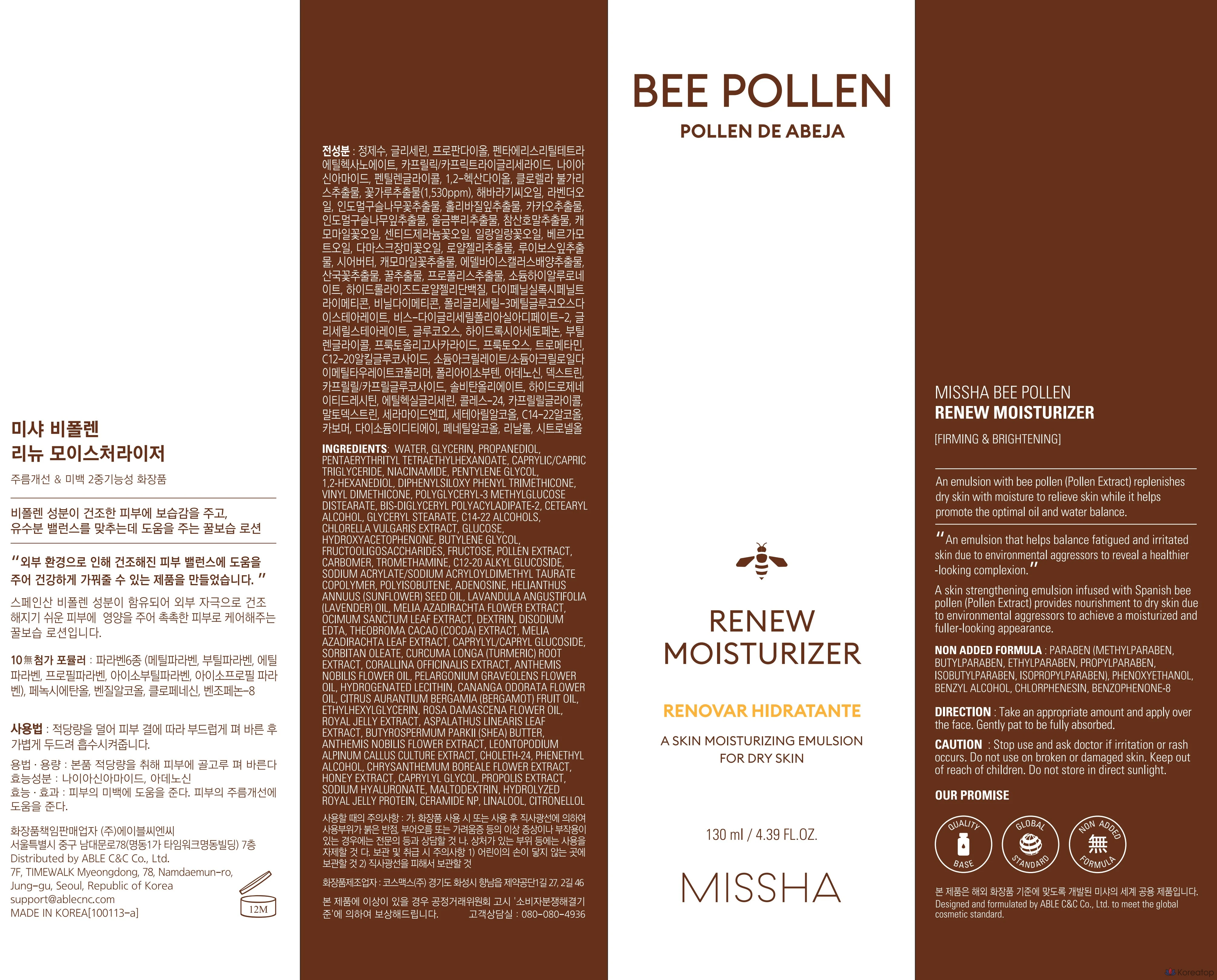 Увлажняющий крем Missha Bee Pollen Renew, 130 мл, 1 шт.