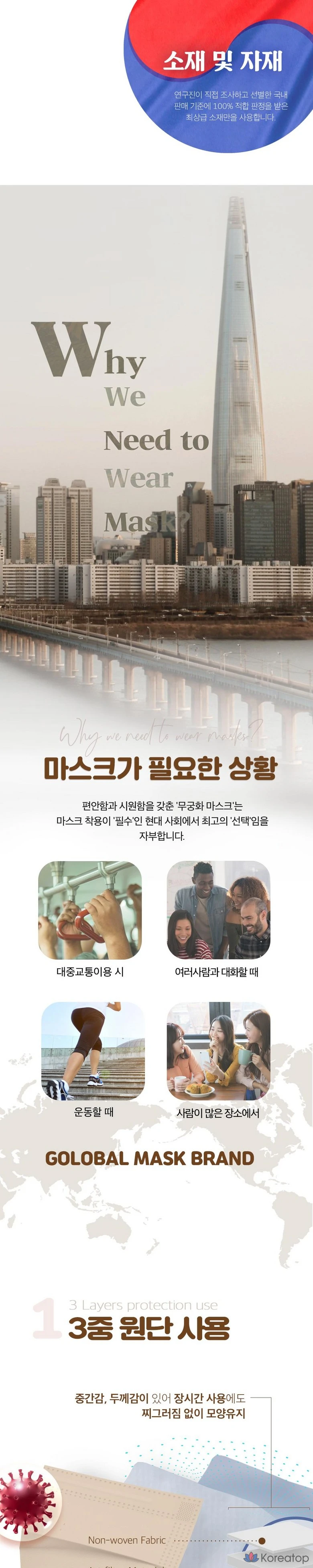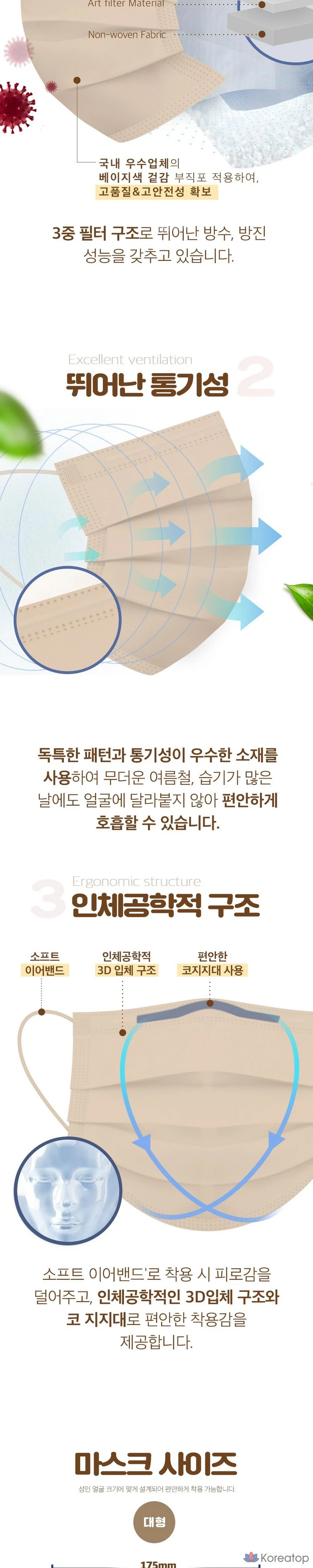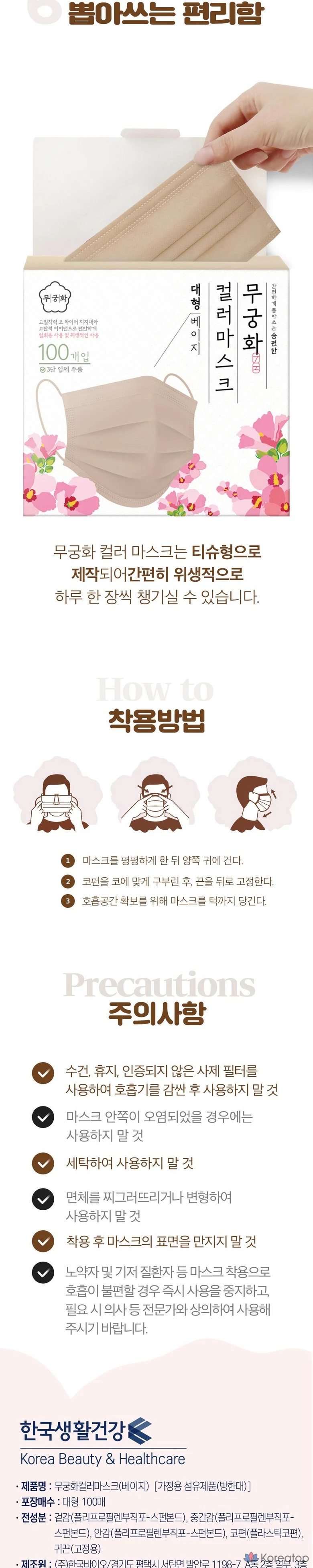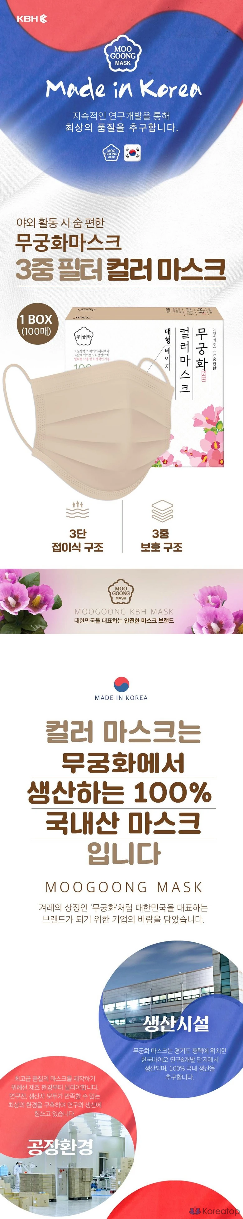 Маска Mukunghwa Color Mask бежевого цвета, большая упаковка, 100 штук, 100 штук.
