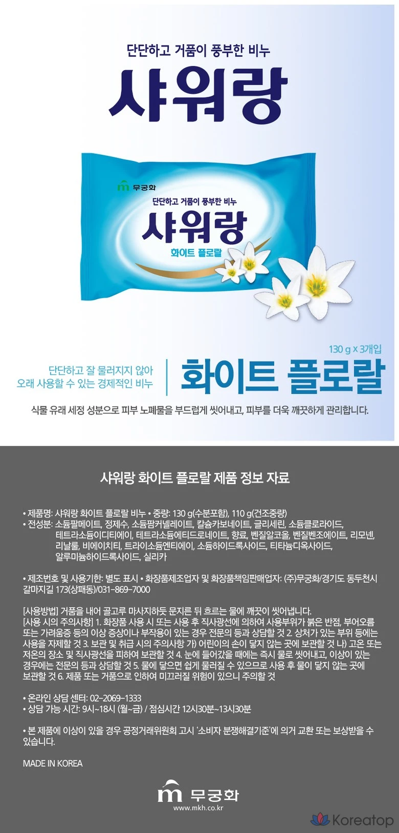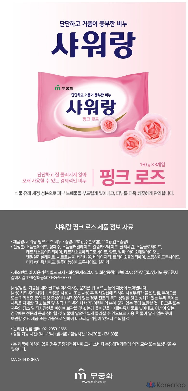 Мыло для душа Mukunghwa Firm and Rich Foaming Soap Shower (Розовая роза, белый цветочный узор), 130 г, 1 шт.