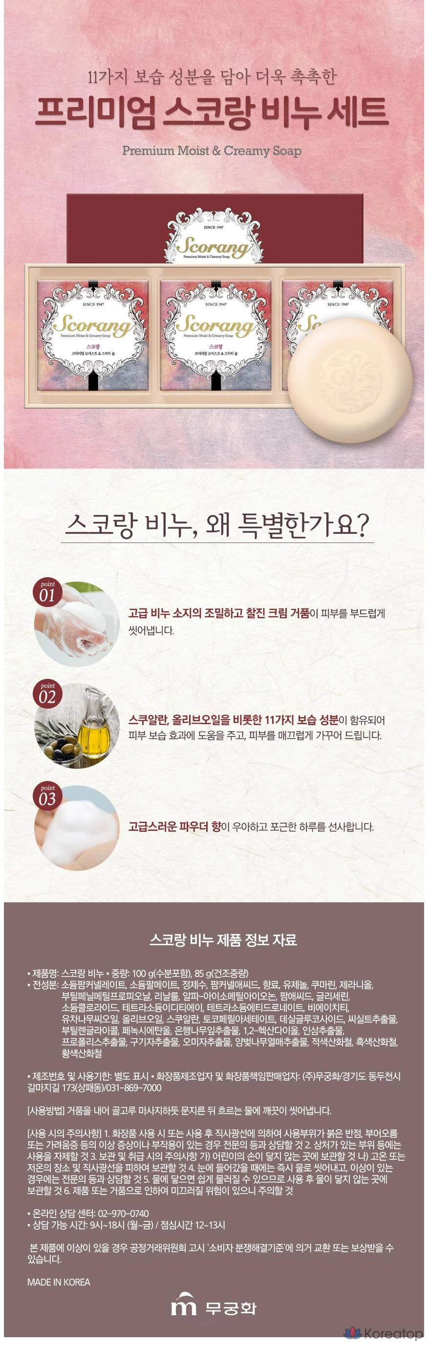 Мыло Mukunghwa Premium Scorang с ароматом, 3 шт., 85 г, 1 шт.