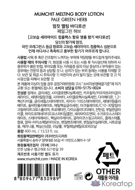 Лосьон для тела Stop MUMCHIT, бледно-зеленый, с травяным ароматом, 400 мл, 1 шт.