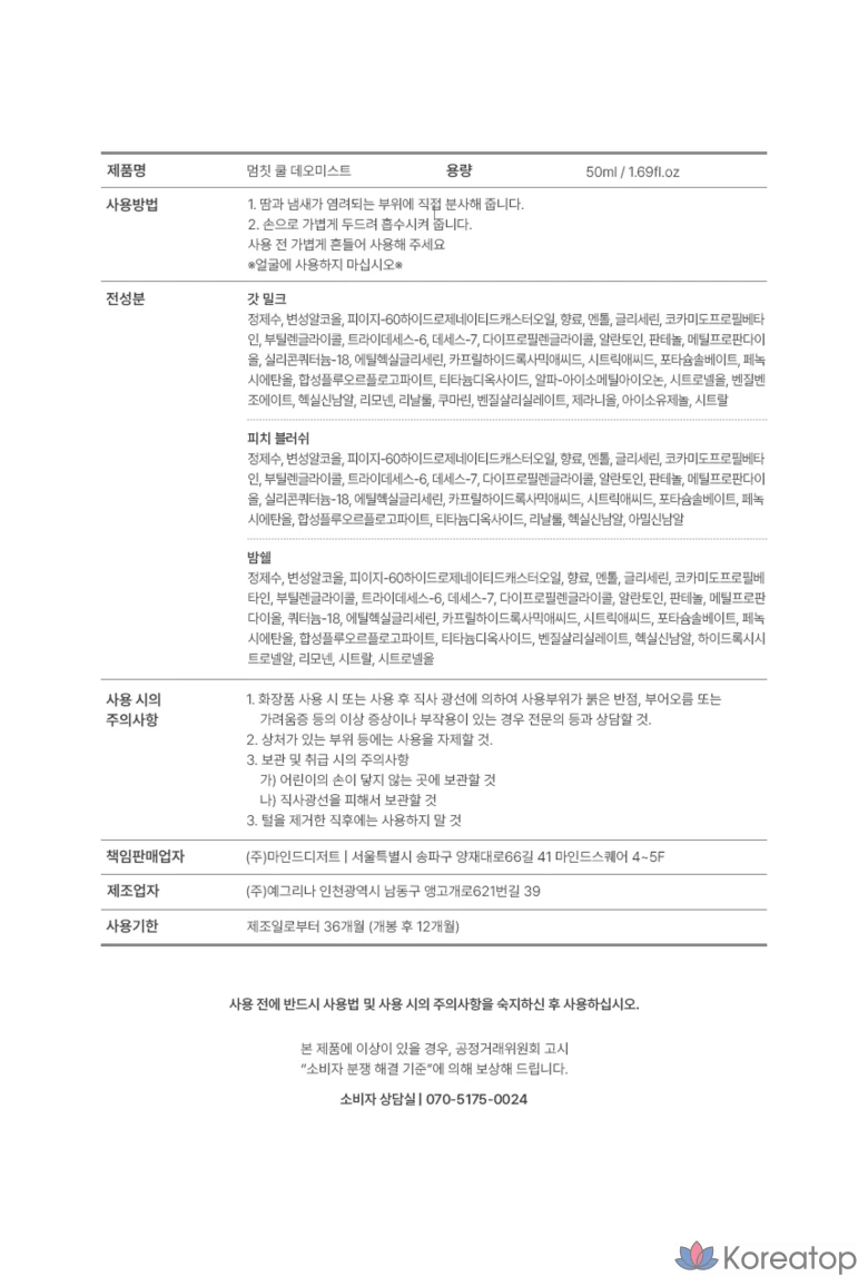 Охлаждающий дезодорант-мист MUMCHIT God Milk, 1 флакон, 50 мл