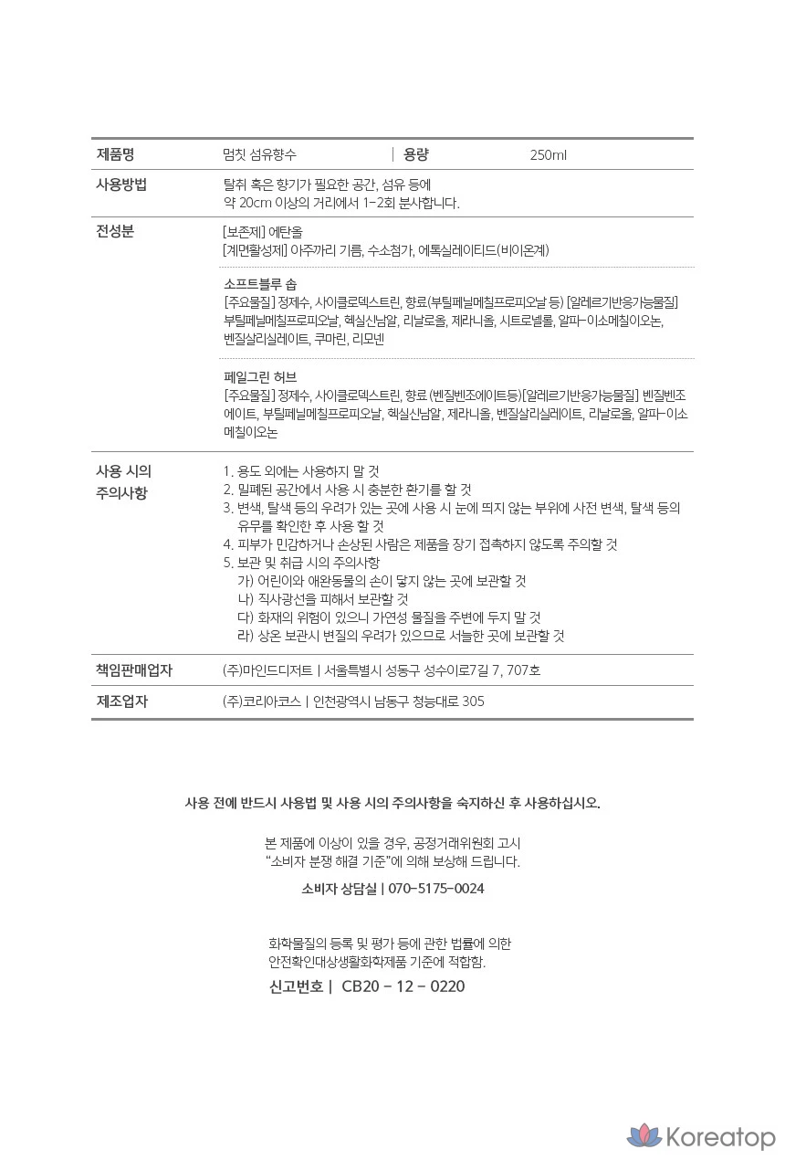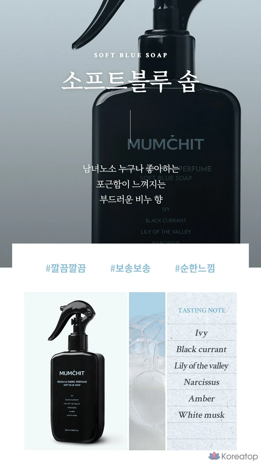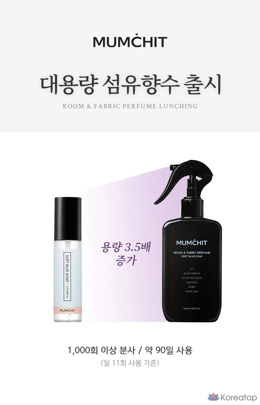 Парфюмерная вода MUMCHIT Stop Large Capacity Fabric Perfume Eau de Parfum, мыло SOFT BLUE, 250 мл, 1 шт.