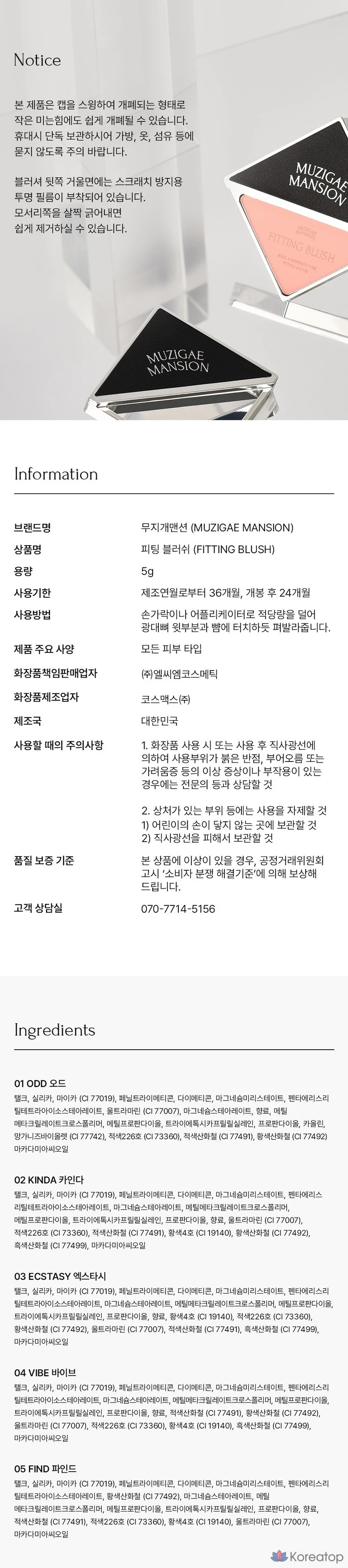 Rainbow Mansion Fitting Blush — это идеальный выбор для создания естественного и свежего образа. Благодаря своей шелковистой текстуре, румяна легко наносятся и равномерно распределяются по коже, придавая ей здоровый вид. Компактный формат позволяет всегда иметь их под рукой, а разнообразие из 5 видов оттенков удовлетворит любые предпочтения. Оттенок 01 ODD добавит вашему макияжу уникальности и выразительности. 🌈
