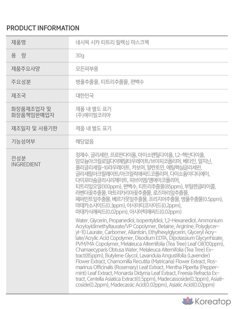 Расслабляющая маска для лица NACIFIC Cica с маслом чайного дерева, 30 г, 1 упаковка, 2 упаковки