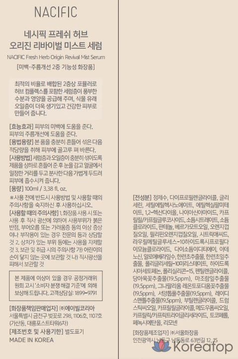 Сыворотка-мист NACIFIC Fresh Herb Origin Revival, 100 мл, 1 шт.