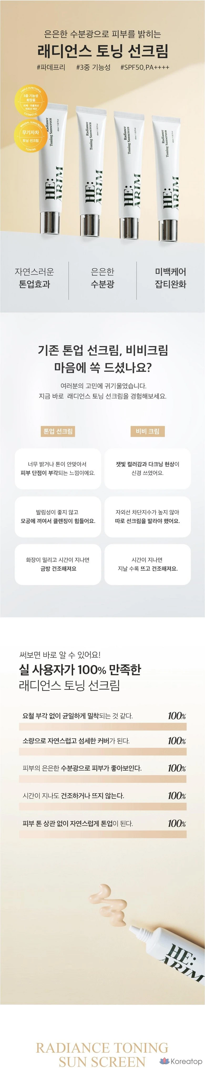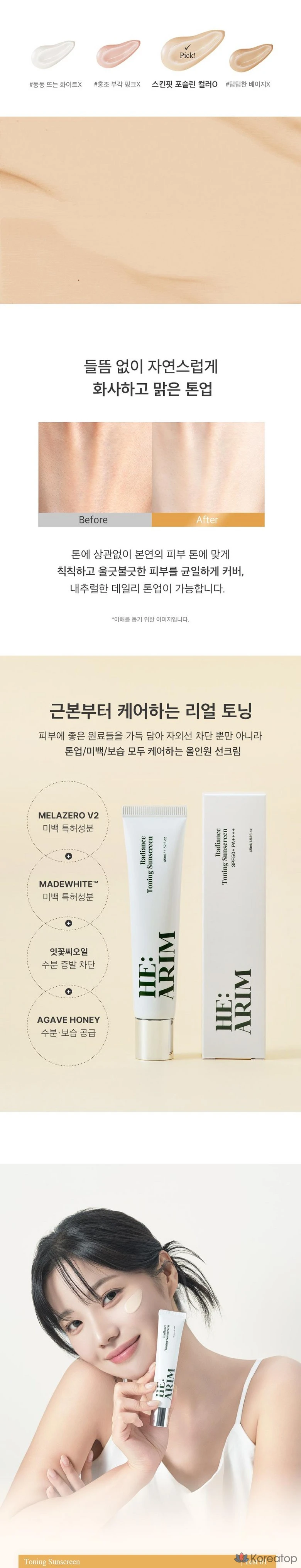 Healim Radiance — солнцезащитный крем с низким уровнем раздражения, отбеливающий, на основе неорганических компонентов, Cica Tone-up, SPF50+ PA++++, увлажняющий солнцезащитный крем, BB-крем для женщин, мужчин и детей, для уменьшения морщин, веснушек и пигментации, солнцезащитная сыворотка Radiance, 1 шт., 45 мл