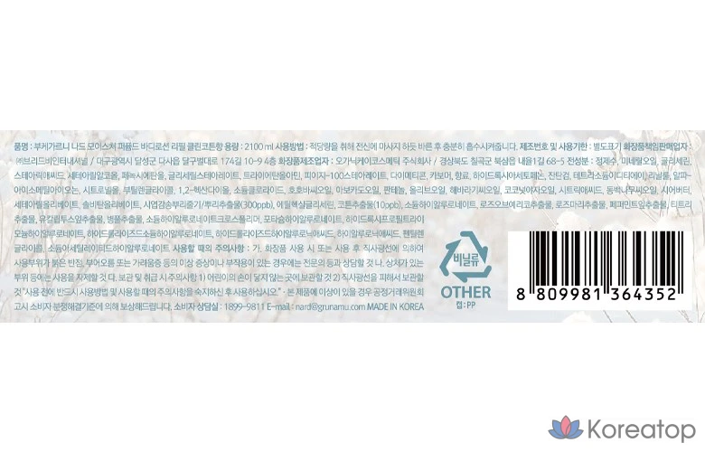 Парфюмированный лосьон для тела Bouquet Garni NARD Refresh с ароматом «Чистый хлопок», сменный блок, 2,1 л, 1 шт.