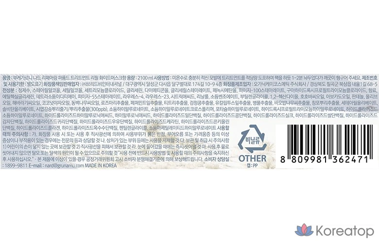 Сменный блок для восстанавливающего парфюмерного средства для волос NARD с ароматом белого мускуса, 1 шт., 2,1 л.