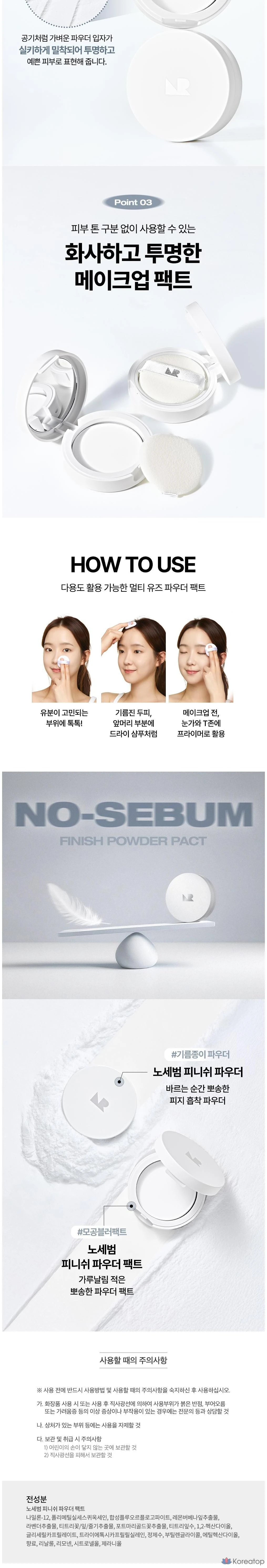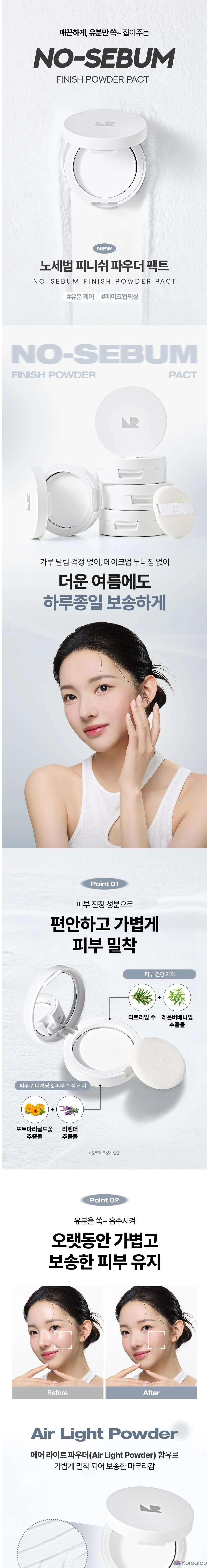 Nature Republic No-Sebum Finishing Powder Pact, 4g, White, 1 шт.