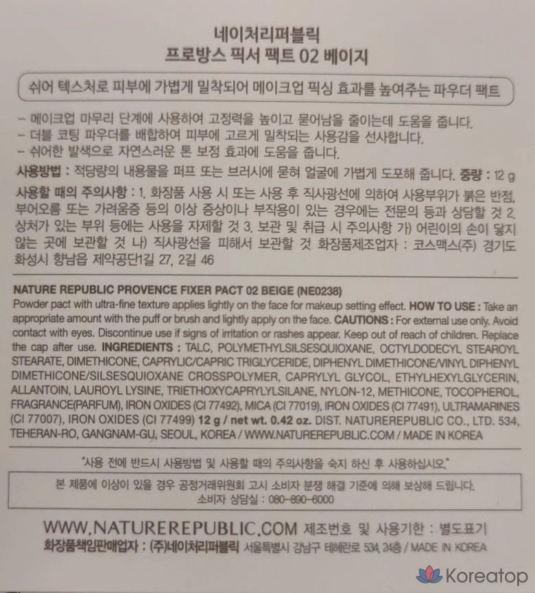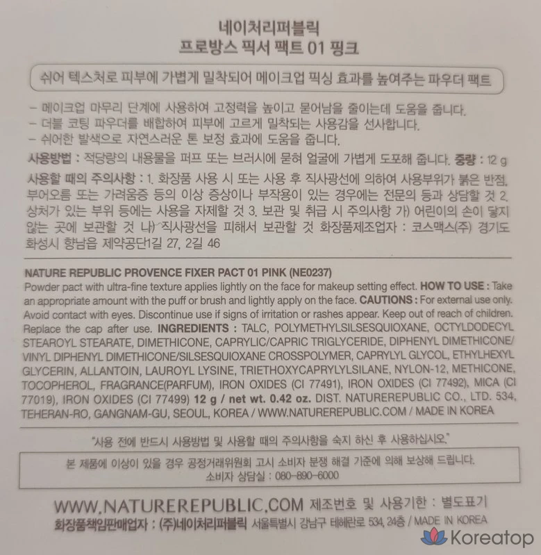 Nature Republic Provence Fixer Pact 12 г, 02 бежевого цвета, 1 шт.