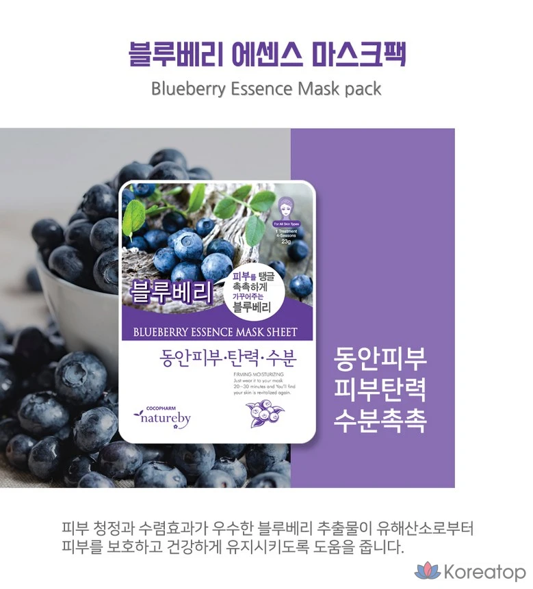 Набор масок для лица Natureby Blueberry Essence Mask Pack, 1 упаковка, 100 листов.