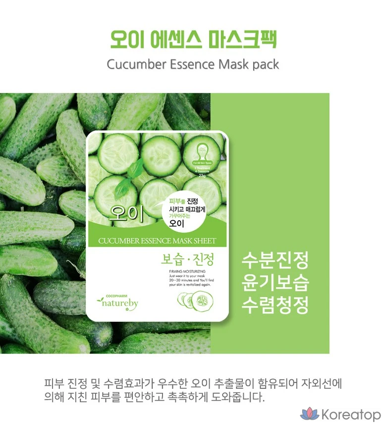 Набор масок для лица Natureby Cucumber Essence Mask, 100 листов, 100 штук, 1 упаковка.