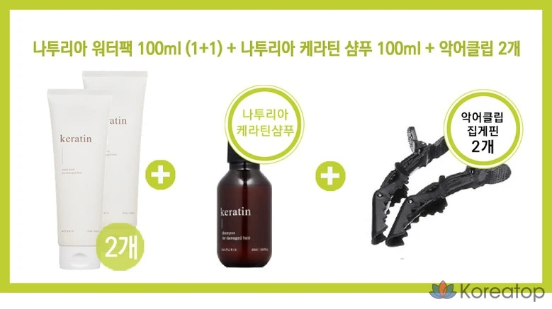 Naturia Keratin Water Pack, 1 набор, 200 мл, шампунь 50 мл, 2 зажима