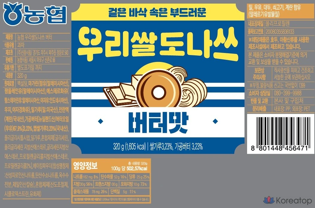 Рисовые пончики со вкусом масла Nonghyup, 320г