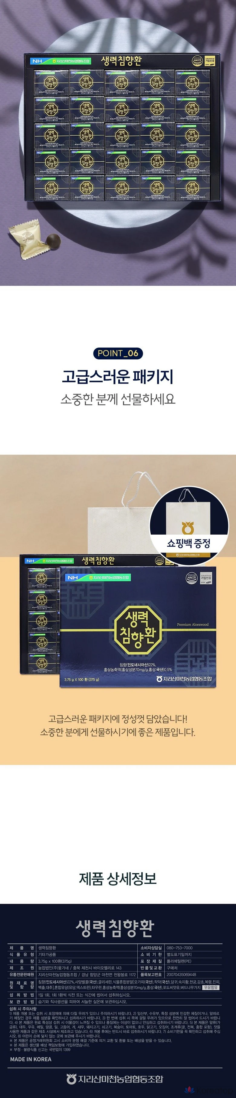 Таблетки Nonghyup Saengryuk Agarwood Pills — это идеальный подарок для родителей на праздник Чусок. Этот набор включает в себя тщательно отобранные ингредиенты, такие как агарвуд, известный своими полезными свойствами. Подарочный формат делает его особенно подходящим для торжественных случаев, добавляя элемент заботы и внимания. Препарат предназначен для поддержания здоровья и благополучия, что делает его отличным выбором для близких людей. 🎁
