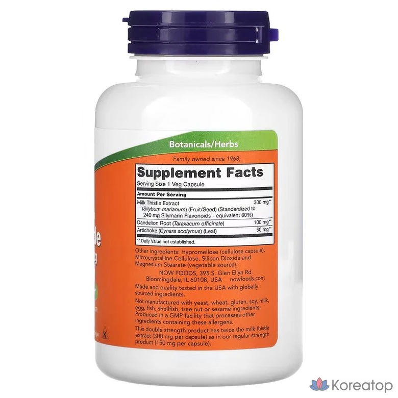 Силимарин экстракт расторопши пятнистой от Now Foods — это натуральная добавка, предназначенная для поддержки здоровья печени. Каждая капсула содержит 300 мг активного вещества, полученного из расторопши, известной своими полезными свойствами. Растительные капсулы удобны в применении и подходят для вегетарианцев. Этот продукт может стать частью вашего ежедневного рациона, помогая поддерживать общее самочувствие и здоровье. 🌿
