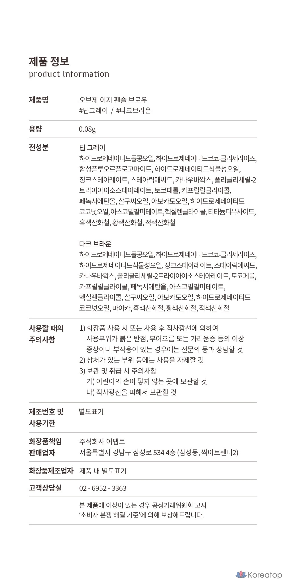 Карандаш для бровей OBge Easy Pencil Brow, 0,08 г, темно-коричневый, 1 шт.