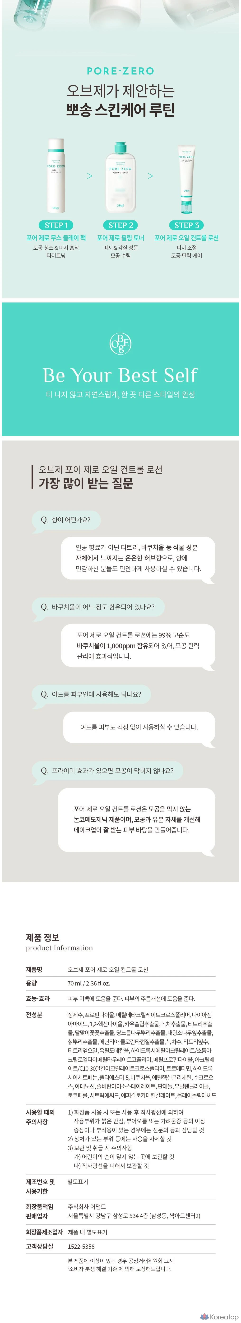 Лосьон для контроля жирности кожи OBge Pore Zero Oil Control, 70 мл, 1 шт.