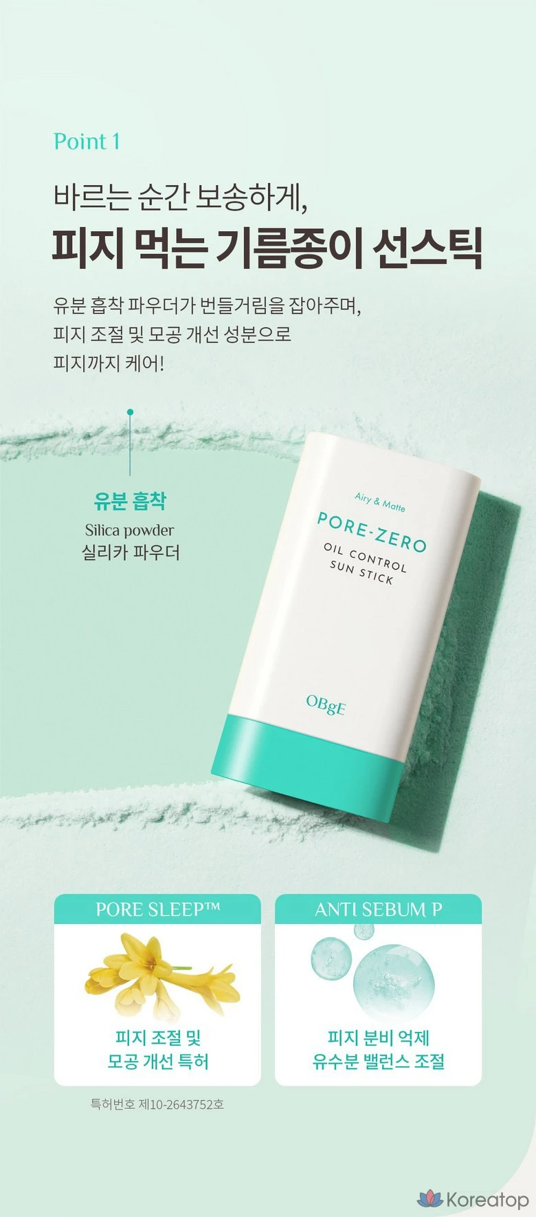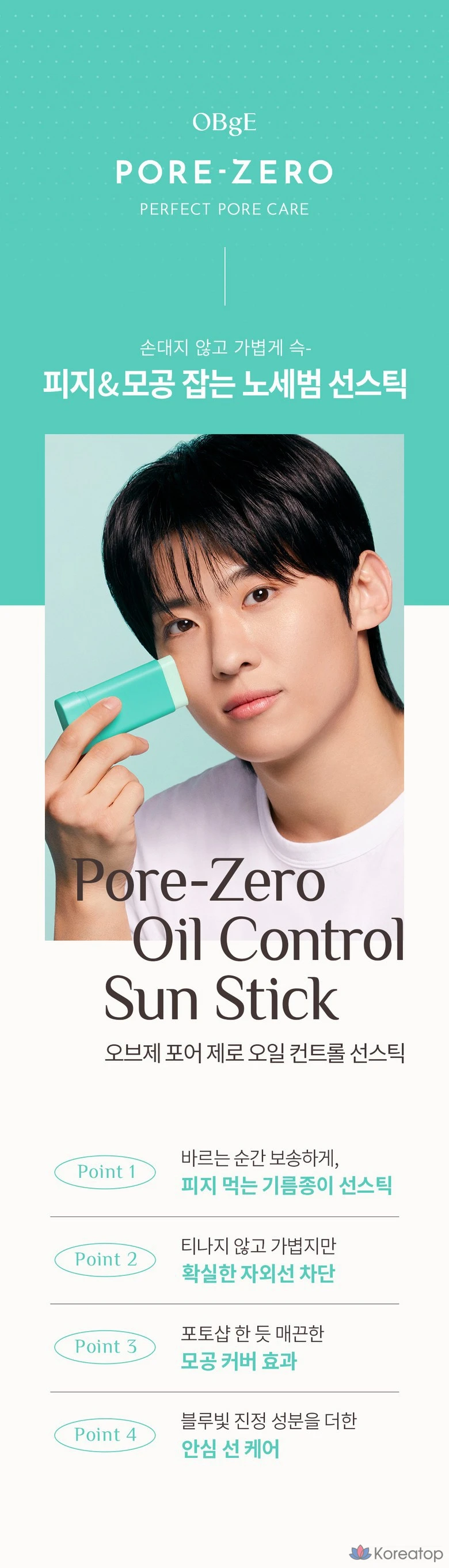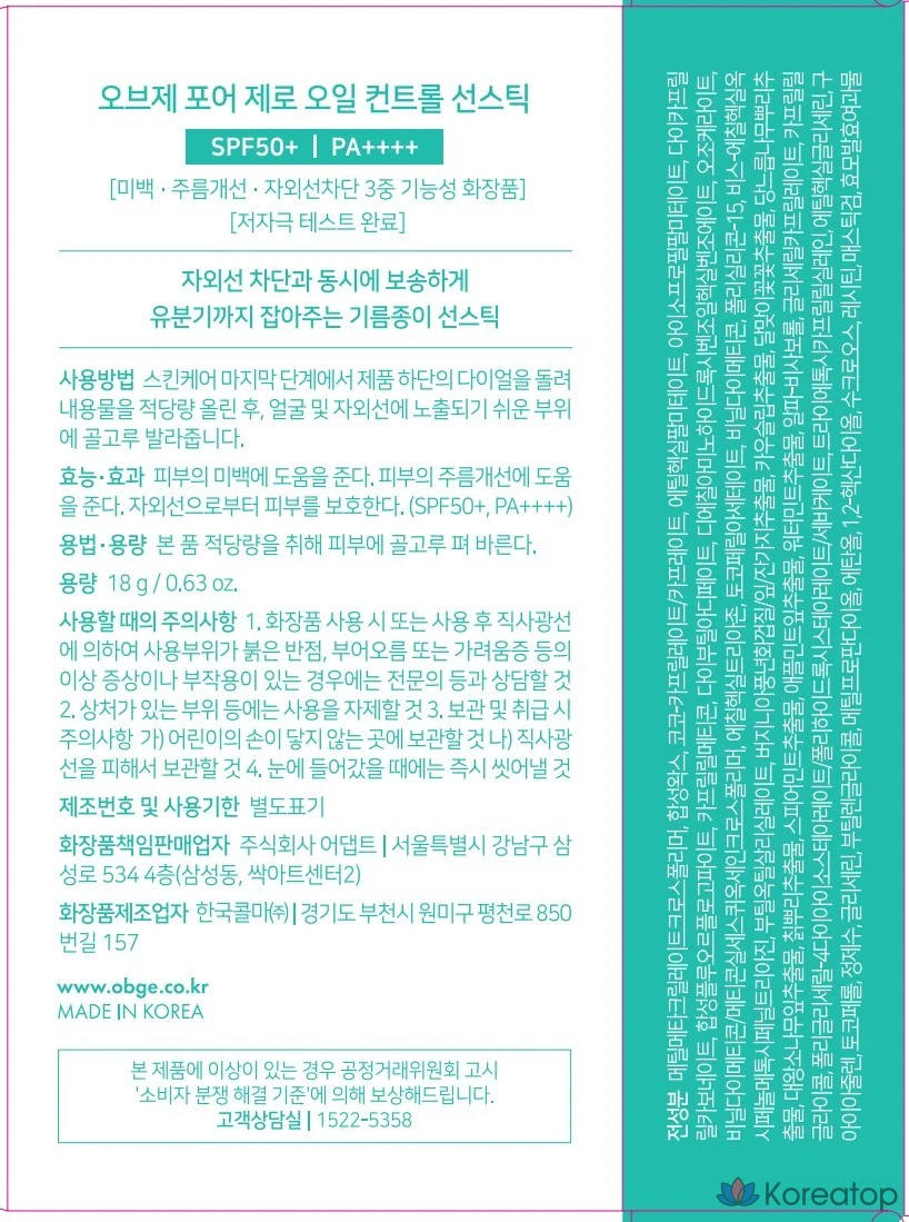 Солнцезащитный стик OBge Pore Zero Oil Control SPF50+ PA++++, 18 г, 1 шт.