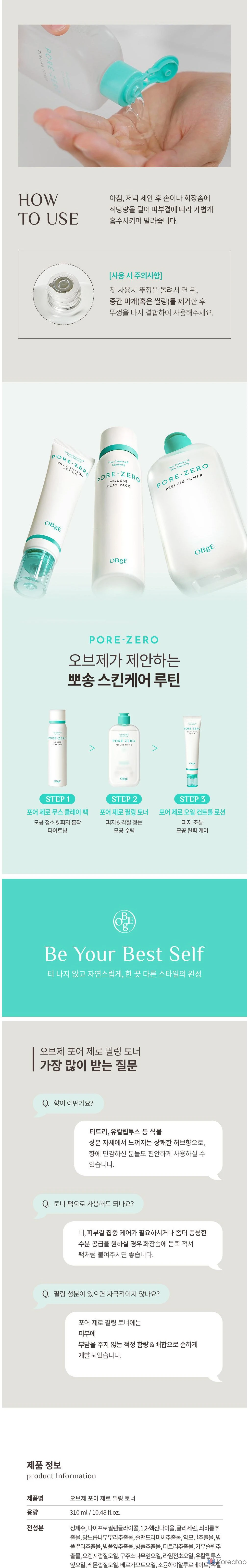 Тоник-пилинг OBge Pore Zero, 310 мл, 1 шт.