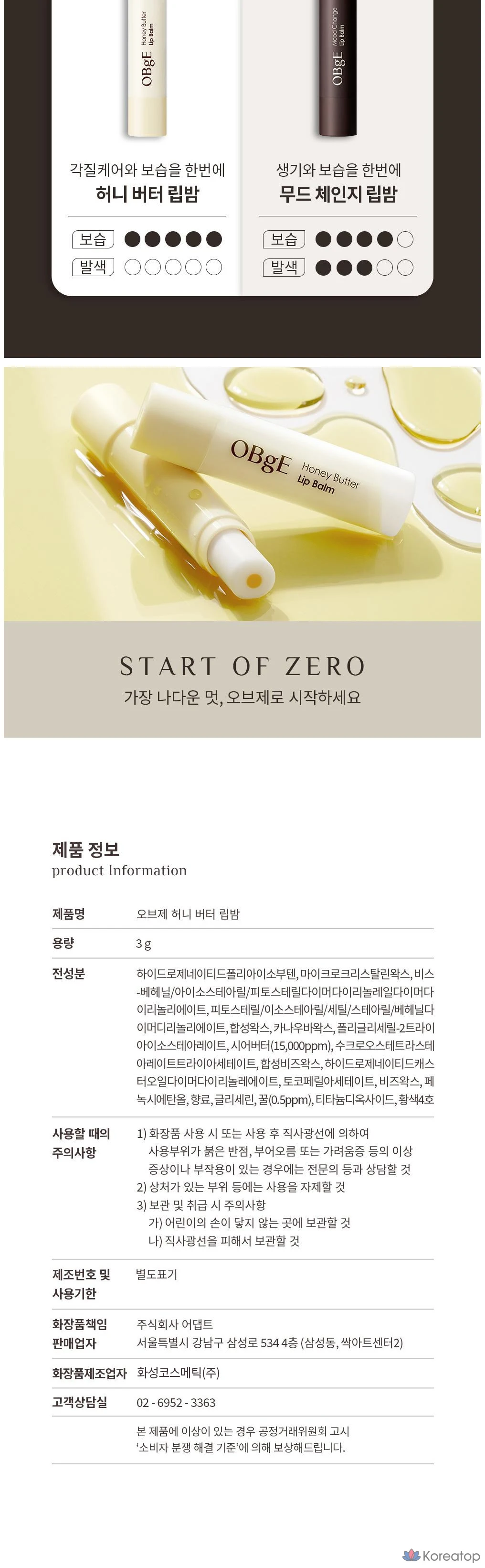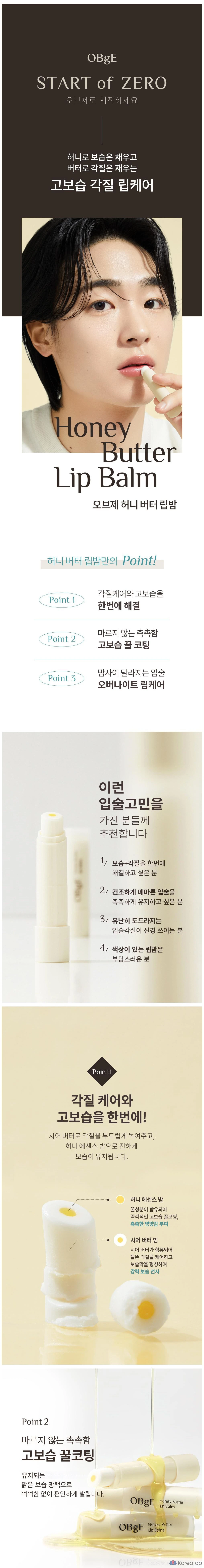 Увлажняющий бальзам для губ OBge Honey Butter, 3 г, бесцветный, 1 шт.