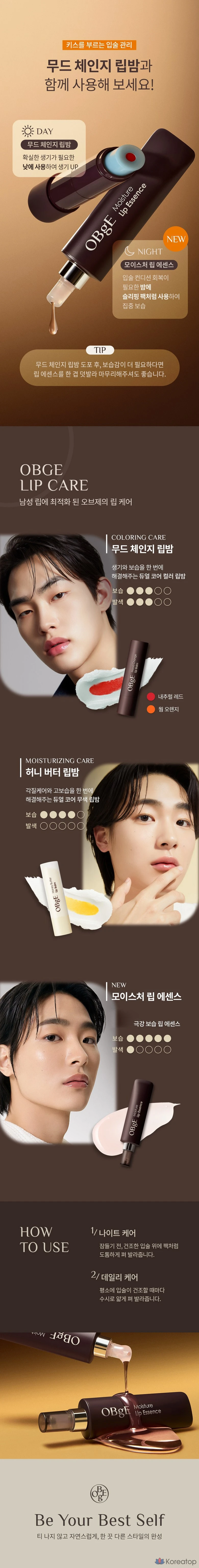 Увлажняющий бальзам для губ OBge Moisture Essence High-Moisture Care Lip Balm, оттенок Clear Blush, 10 мл, 1 шт.
