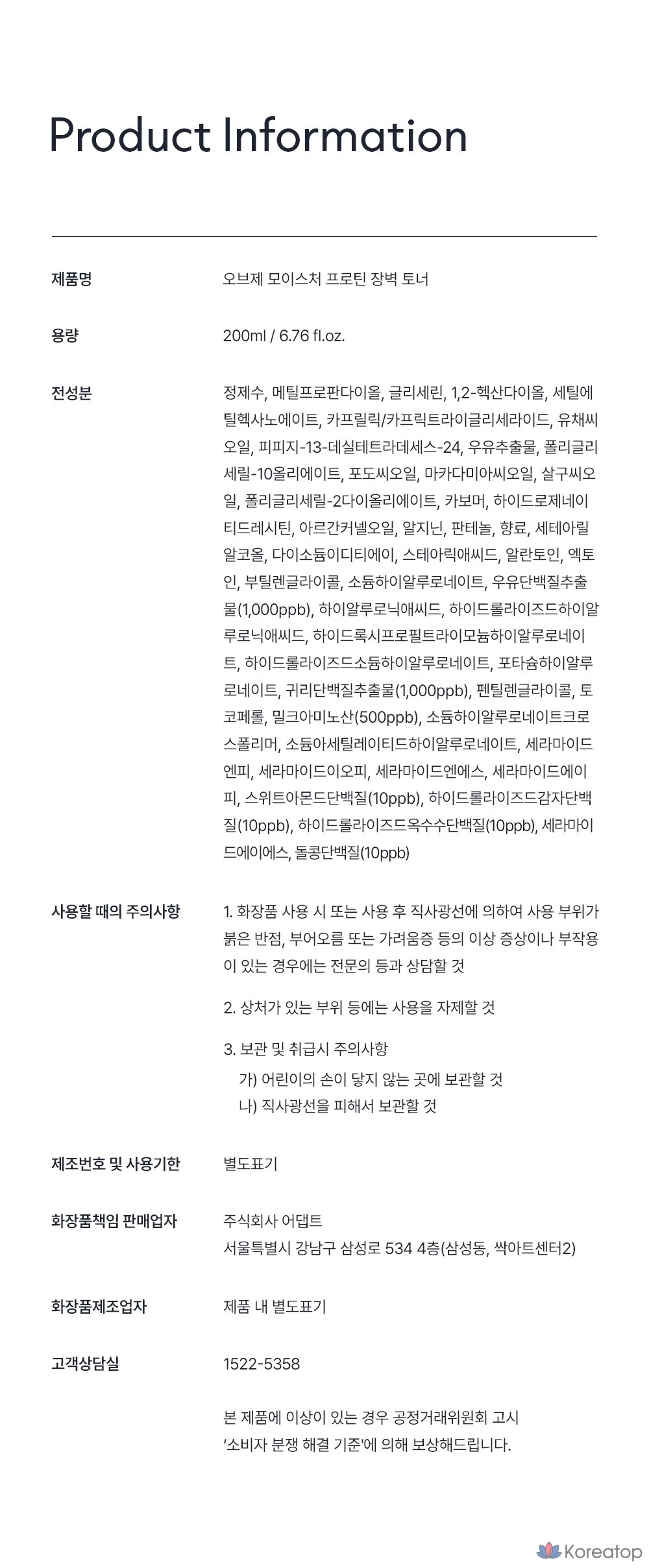 Увлажняющий протеиновый тоник OBge, 1 шт., 200 мл