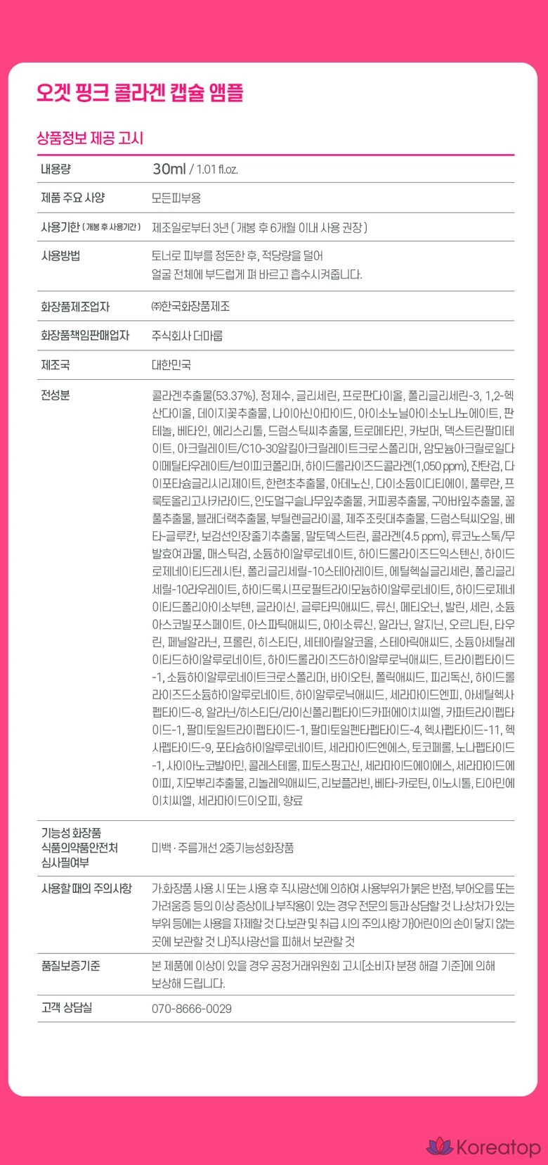Капсулы-ампулы O!GETi с розовым коллагеном, 1 шт., 30 мл