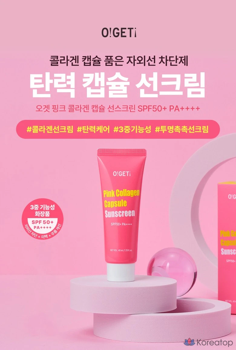 Солнцезащитный крем O!GETi Pink Collagen Capsule SPF50+ PA++++, 40 мл, 1 шт.