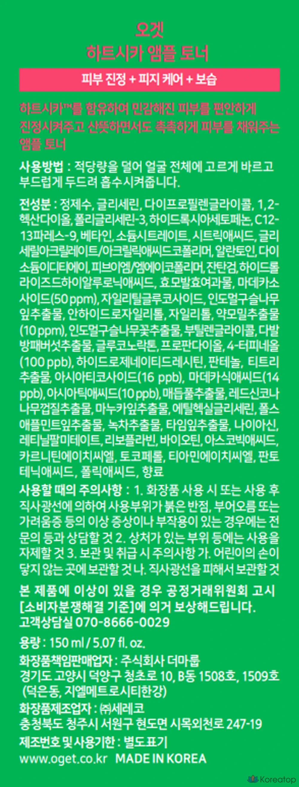 Тоник-ампунь O!GETi Heart Cica, 1 шт., 150 мл