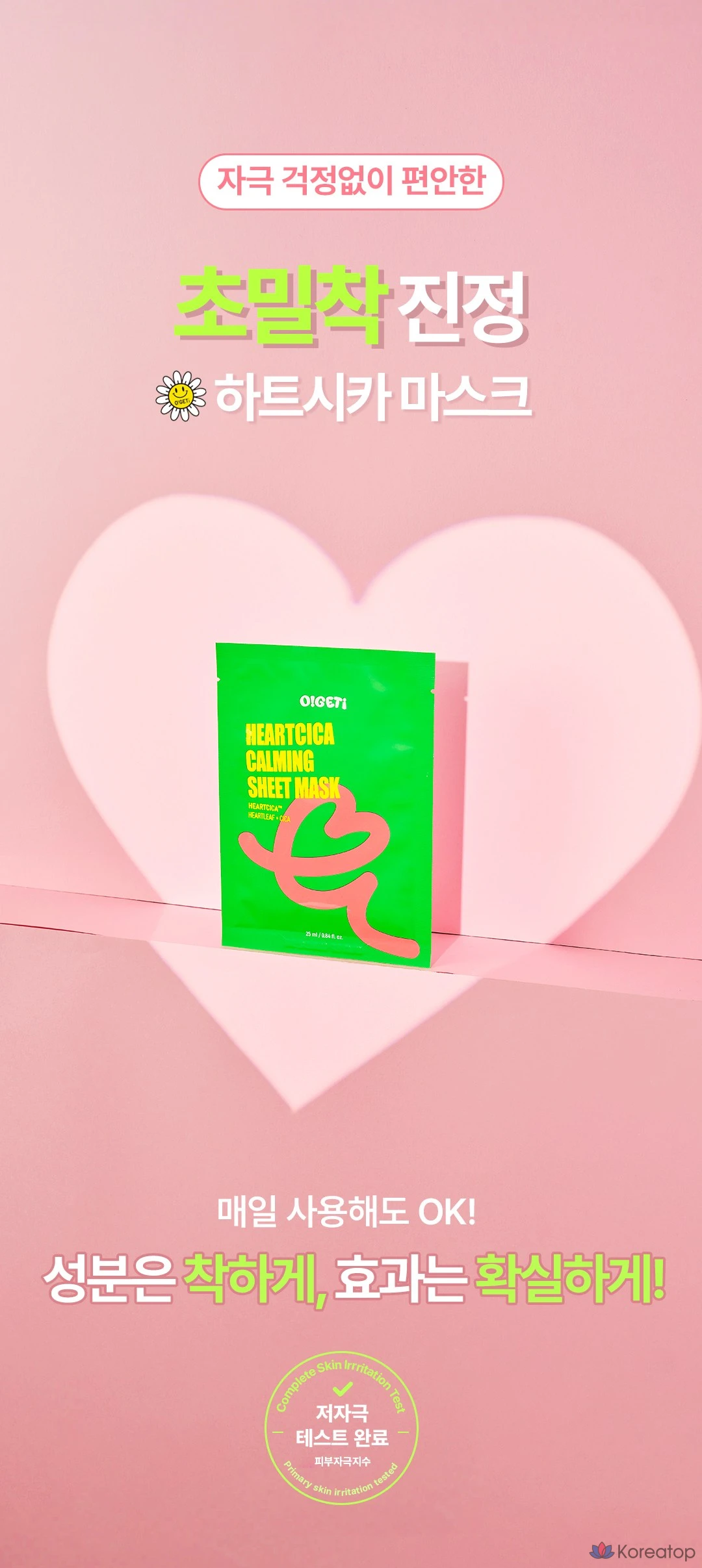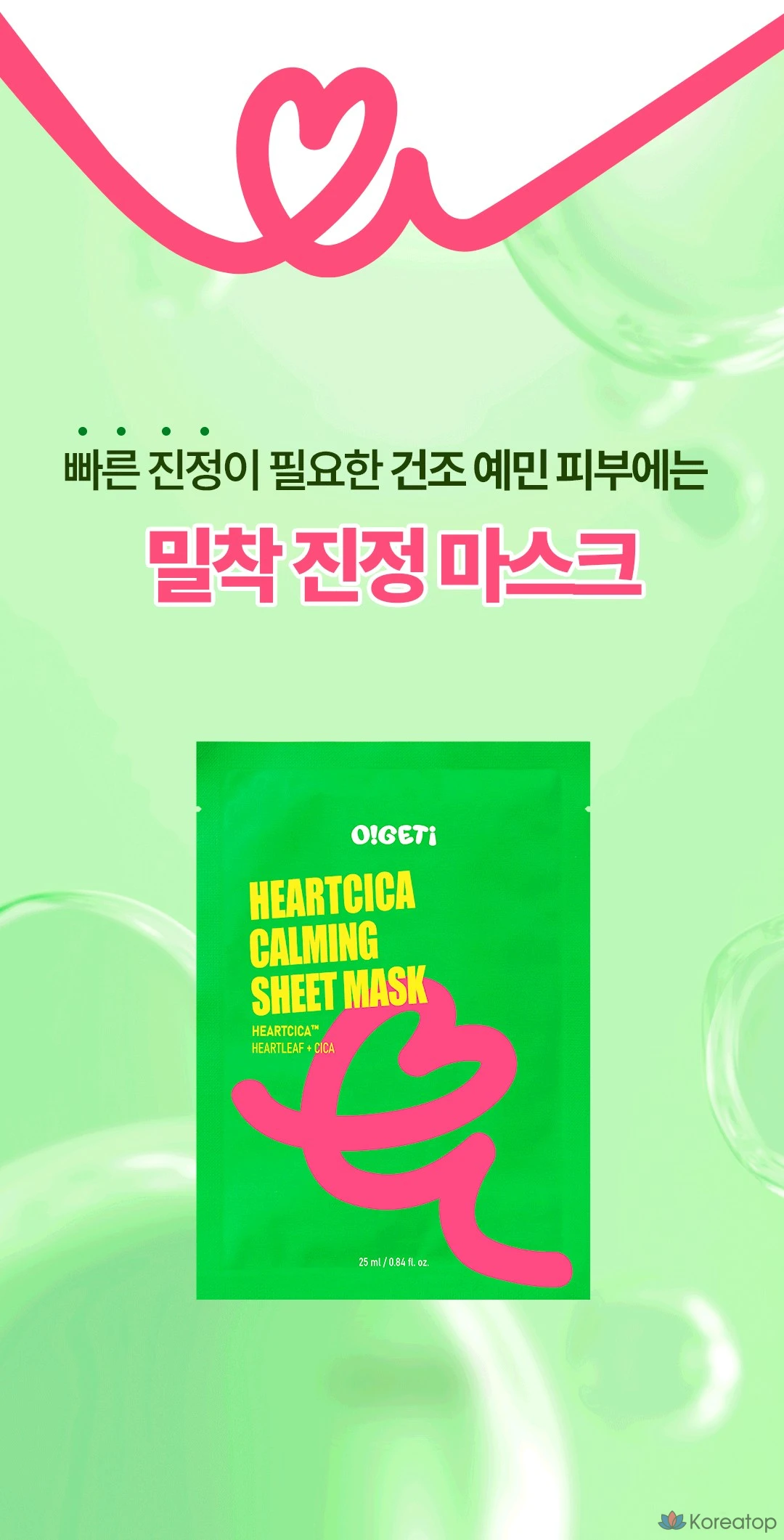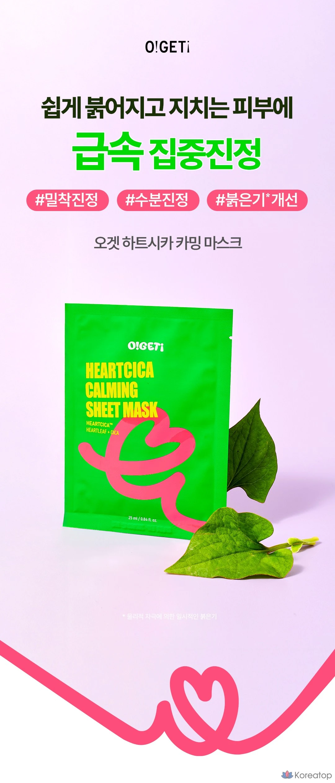 Успокаивающая тканевая маска O!GETi Heart Cica, 5 штук, 1 упаковка
