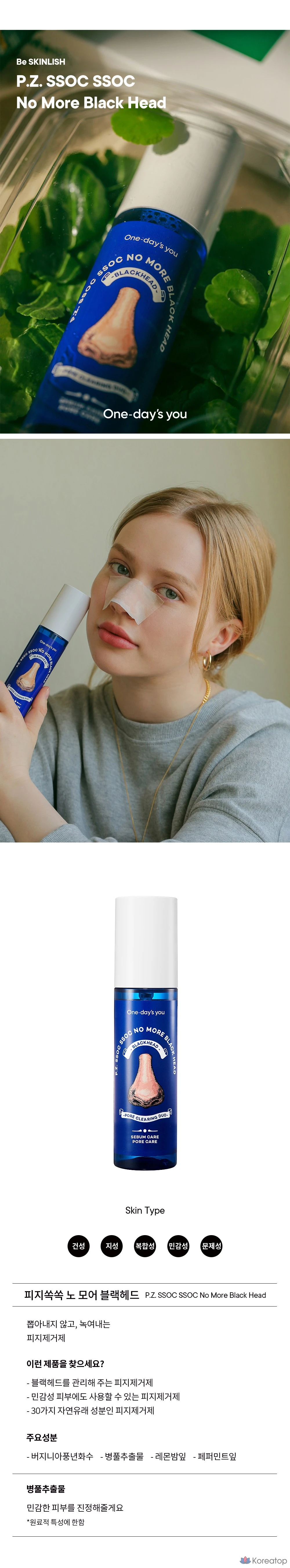 Набор One-Day's You Sebum-Removing No More Blackhead Pore Clean Duo: средство для удаления кожного сала 100 мл + 20 ватных дисков, 1 шт.