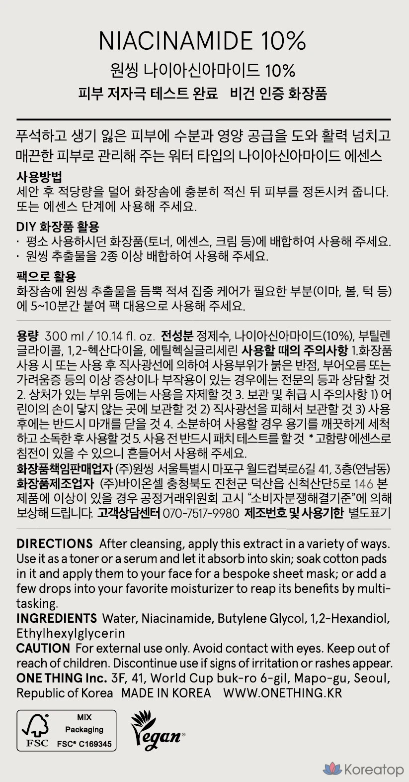 Тоник с ниацинамидом 10% One Thing