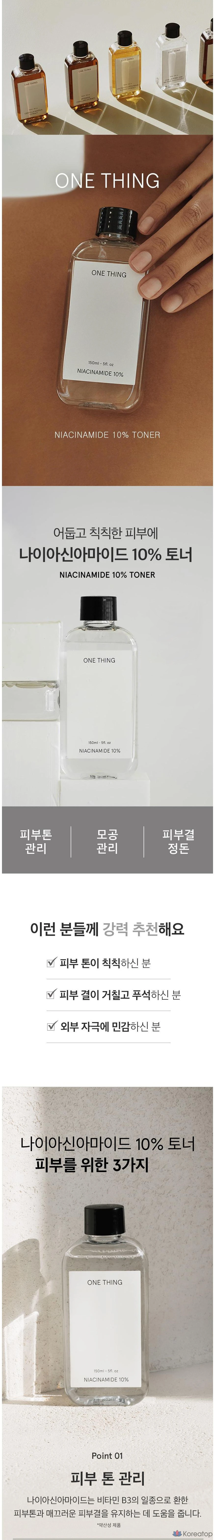 Тоник с ниацинамидом 10% от One Thing помогает улучшить текстуру кожи и выровнять тон. Благодаря высокой концентрации активного ингредиента, он эффективно борется с несовершенствами и уменьшает видимость пор. Легкая увлажняющая формула быстро впитывается, оставляя кожу свежей и сияющей. Подходит для ежедневного использования и всех типов кожи, включая чувствительную. 🌿