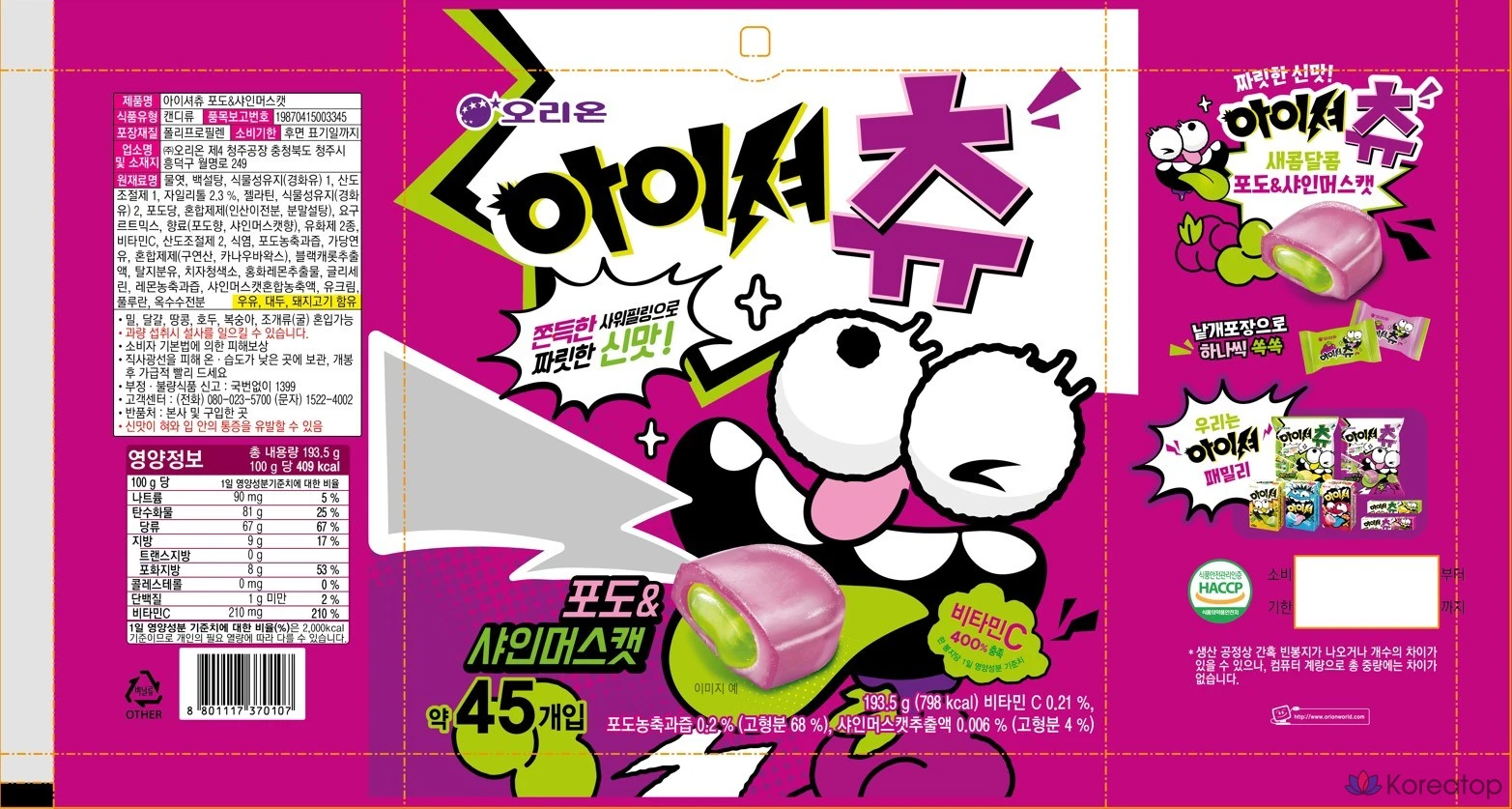 Жевательные конфеты Orion Ice Chew со вкусом винограда и муската, 193,5 г