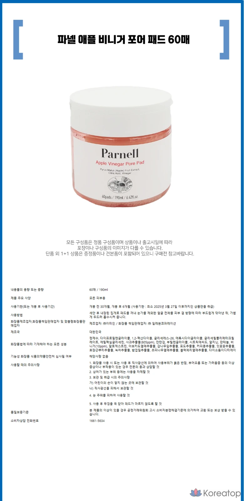 Очищающие подушечки для пор Parnell с яблочным уксусом, 60 листов, 1 упаковка