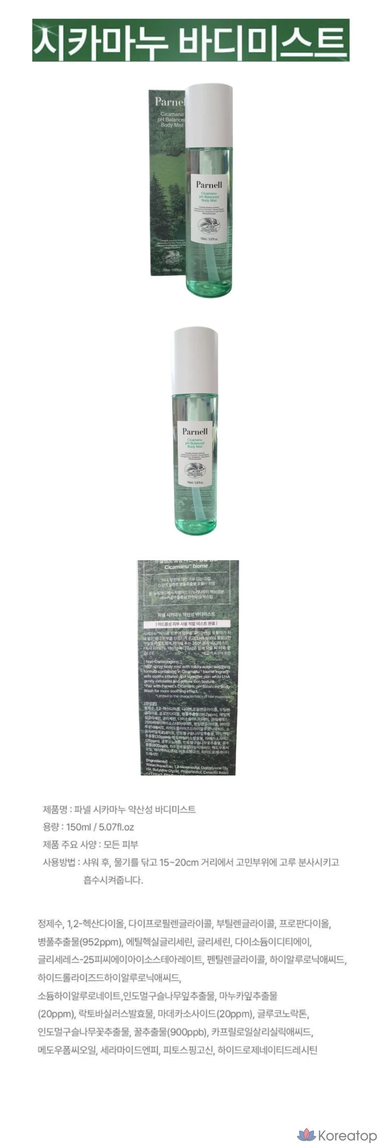 Спрей для тела Gardreum Acne Body Mist Parnell Shikamanu с мягкой кислотностью, 150 мл, 1 шт.