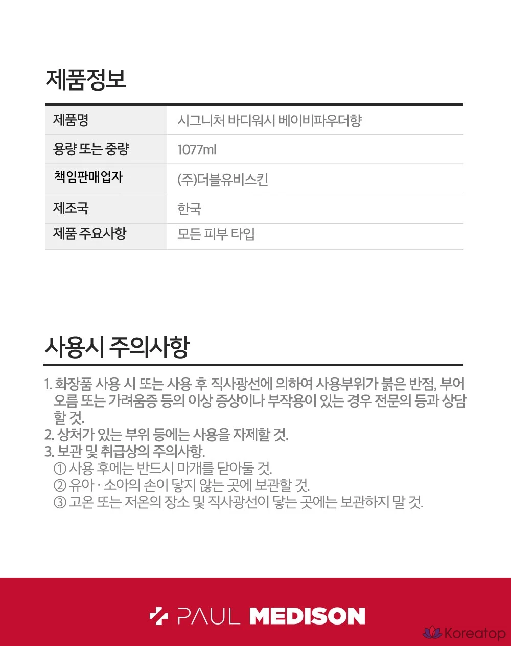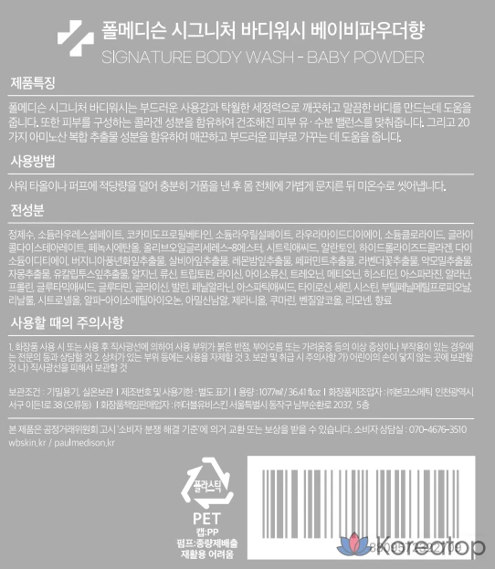 Гель для душа PAUL MEDISON Signature с ароматом детской присыпки, 1,077 л, 1 шт.