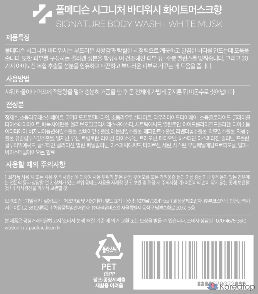 Гель для душа PAUL MEDISON Signature White Musk, 600 мл, 1 флакон