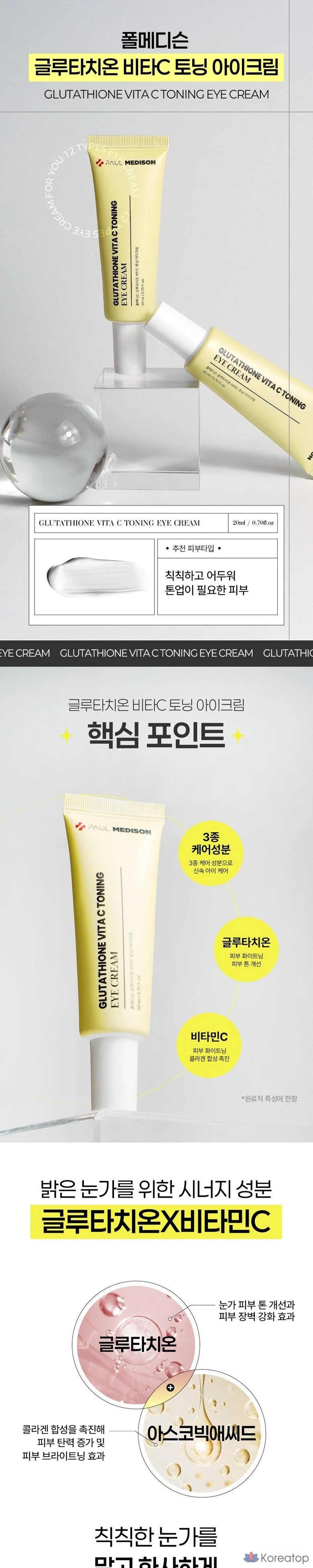 Крем для глаз PAUL MEDISON с глутатионом и витамином С, осветляющий, тонизирующий, разглаживающий морщины и уменьшающий веснушки, 1 шт., 20 мл
