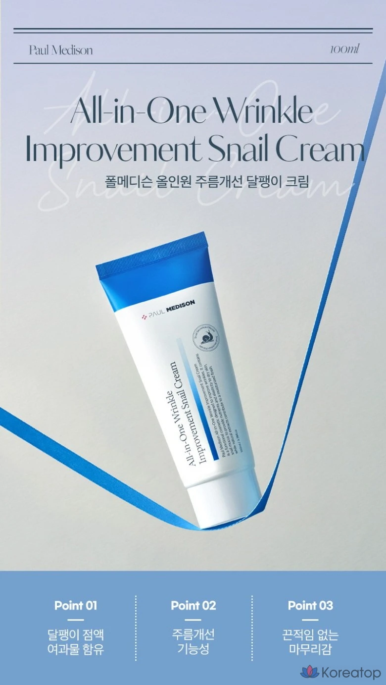 Крем PAUL MEDISON All-in-One для разглаживания морщин с экстрактом слизи улитки, 100 мл, 1 шт.